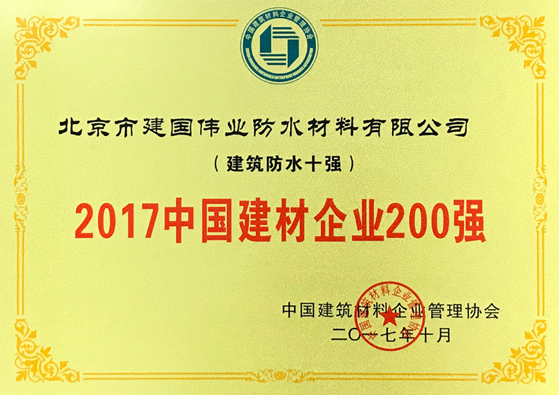建國偉業(yè)榮獲“2017中國建材企業(yè)200強”稱號