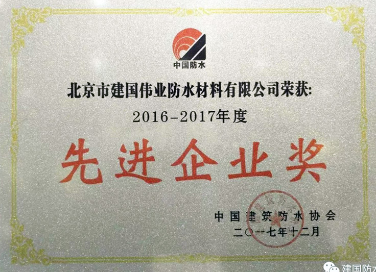2017年12月7日,由中國建筑防水協(xié)會主辦的《全國建筑防水行業(yè)質(zhì)量提升工作大會暨2017年建筑防水行業(yè)年會》在??谡秸匍_。本次會議對2017年防水行業(yè)取得的成績和質(zhì)量提升方面面對的問題、挑戰(zhàn)進(jìn)行了詳細(xì)解讀,對質(zhì)量提升提出了新的要求和建議,并對質(zhì)量提升及科技進(jìn)步企業(yè)進(jìn)行表彰。建國偉業(yè)集團(tuán)榮獲“2016-2017年建筑防水行業(yè)先進(jìn)企業(yè)”稱號。